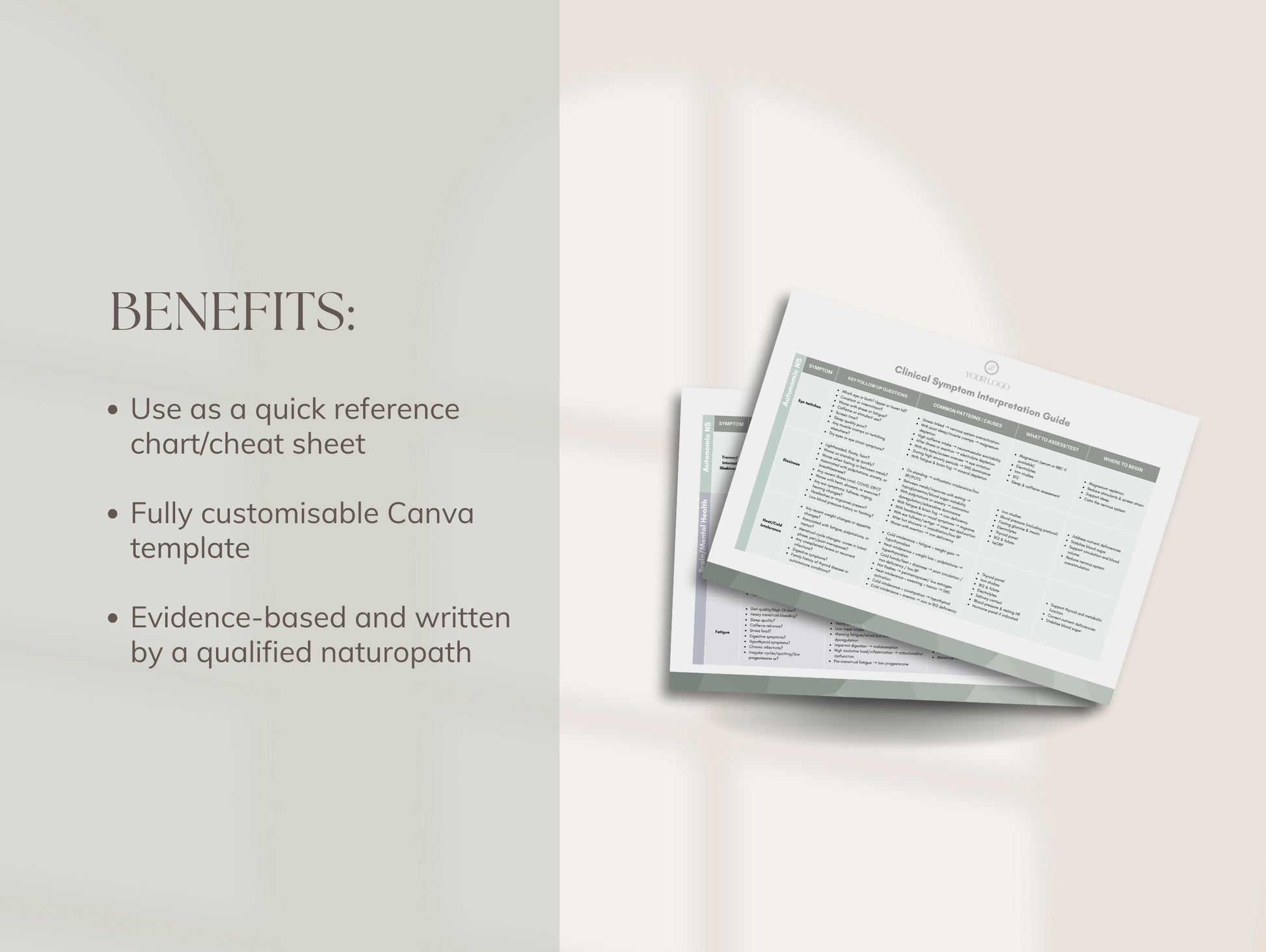 Streamline your consultations and save hours time with this Clinical Symptom Interpretation Chart. Designed to help you quickly interpret client symptoms, identify potential underlying causes, and plan your next steps.