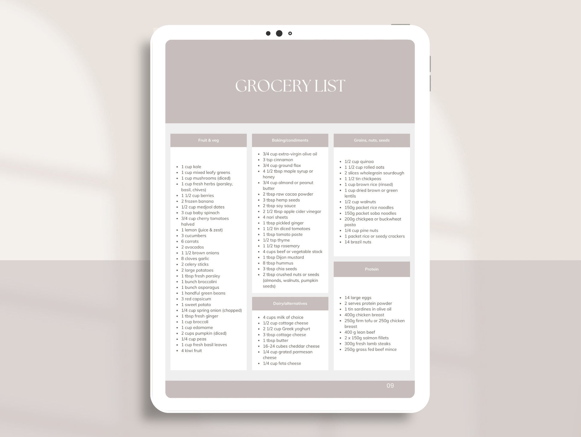 - Grocery list