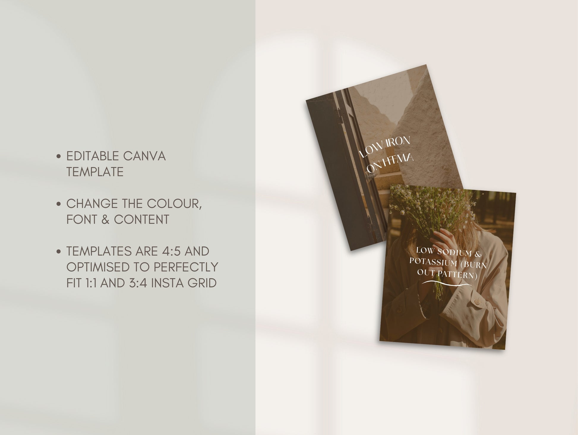 - Templates are 4:5 and optimised to perfectly fit 1:1 and 3:4 insta grid